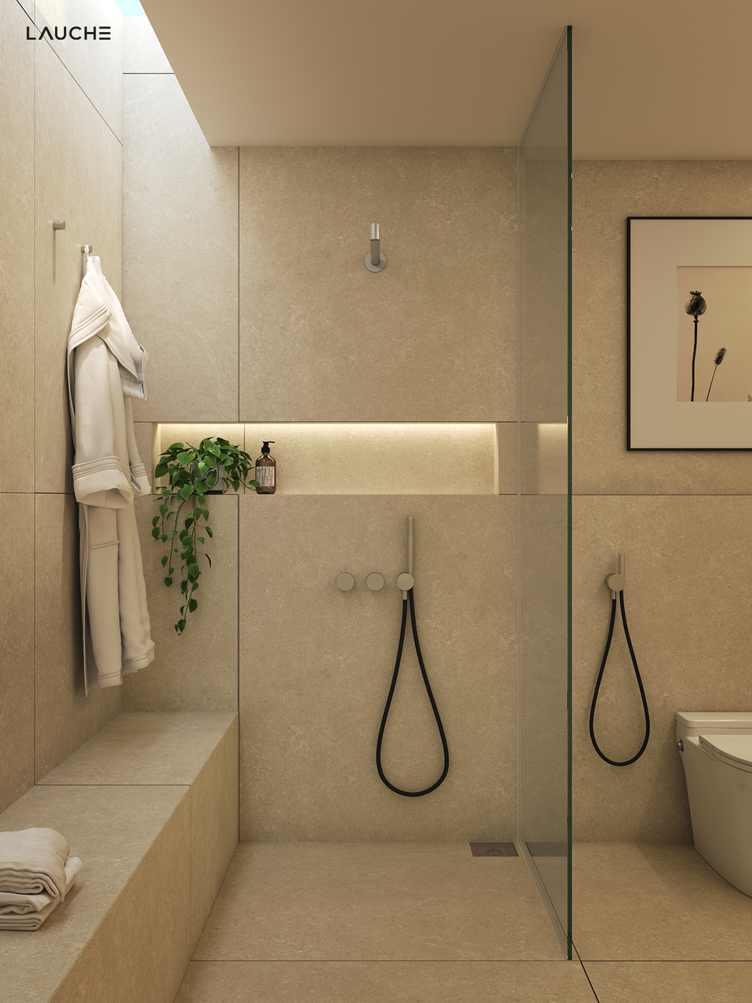 따스한 조명 아래 베이지 톤의 결이 고르게 드러나며,
