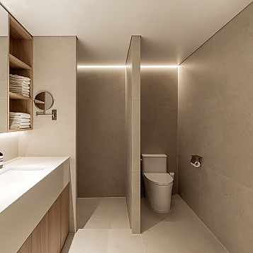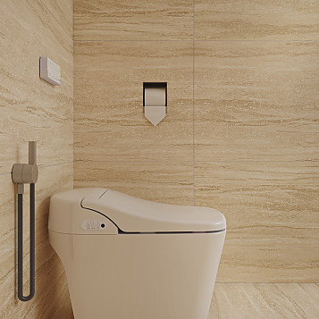호텔식 욕실처럼 미니멀하고 고급스러운 욕실인테리어에는 어떤 디테일이 숨어있을까요? 숨은 디테일을 찾을 때 작지만 정교한 디테일을 가진 욕실 악세서리, 휴지걸이에도 한 번 주목해보세요.