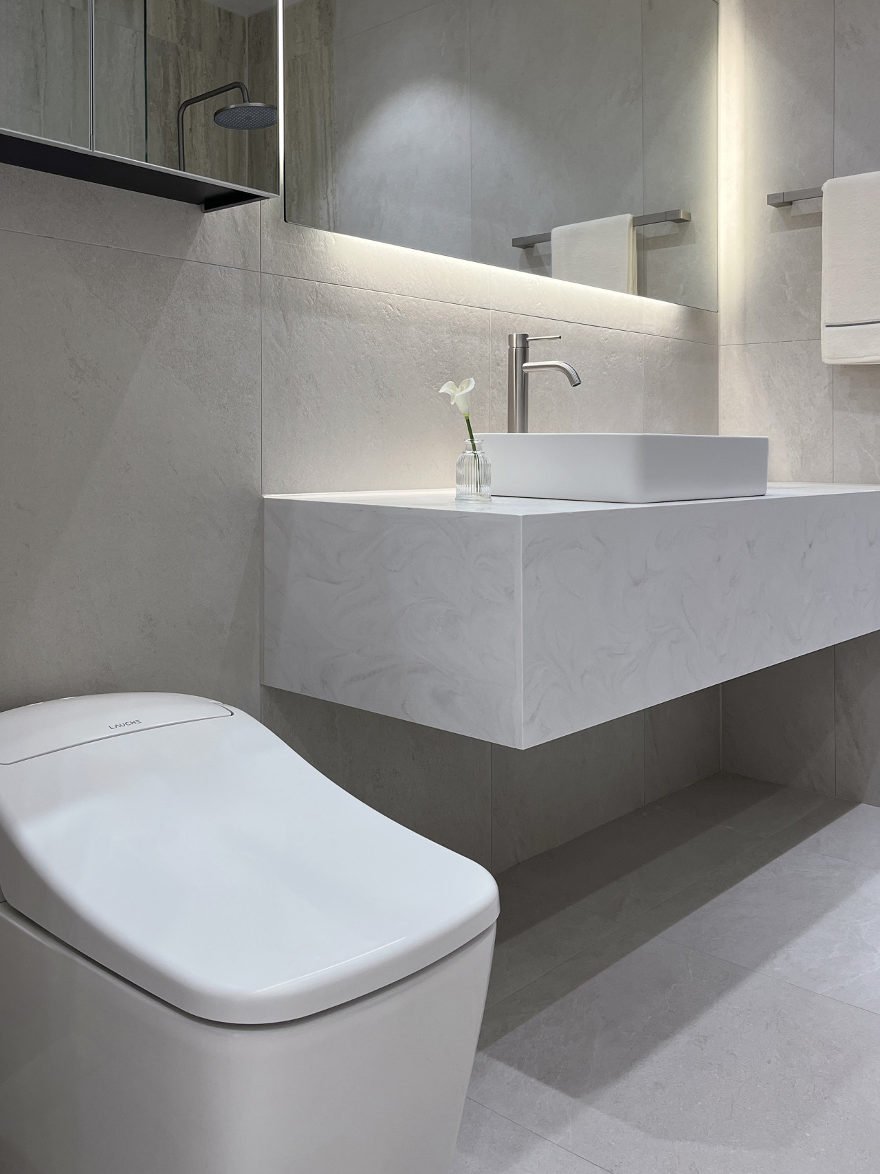 그 덕분에 욕실이 시각적으로 한층 편안하고 여유롭게 느껴져요.